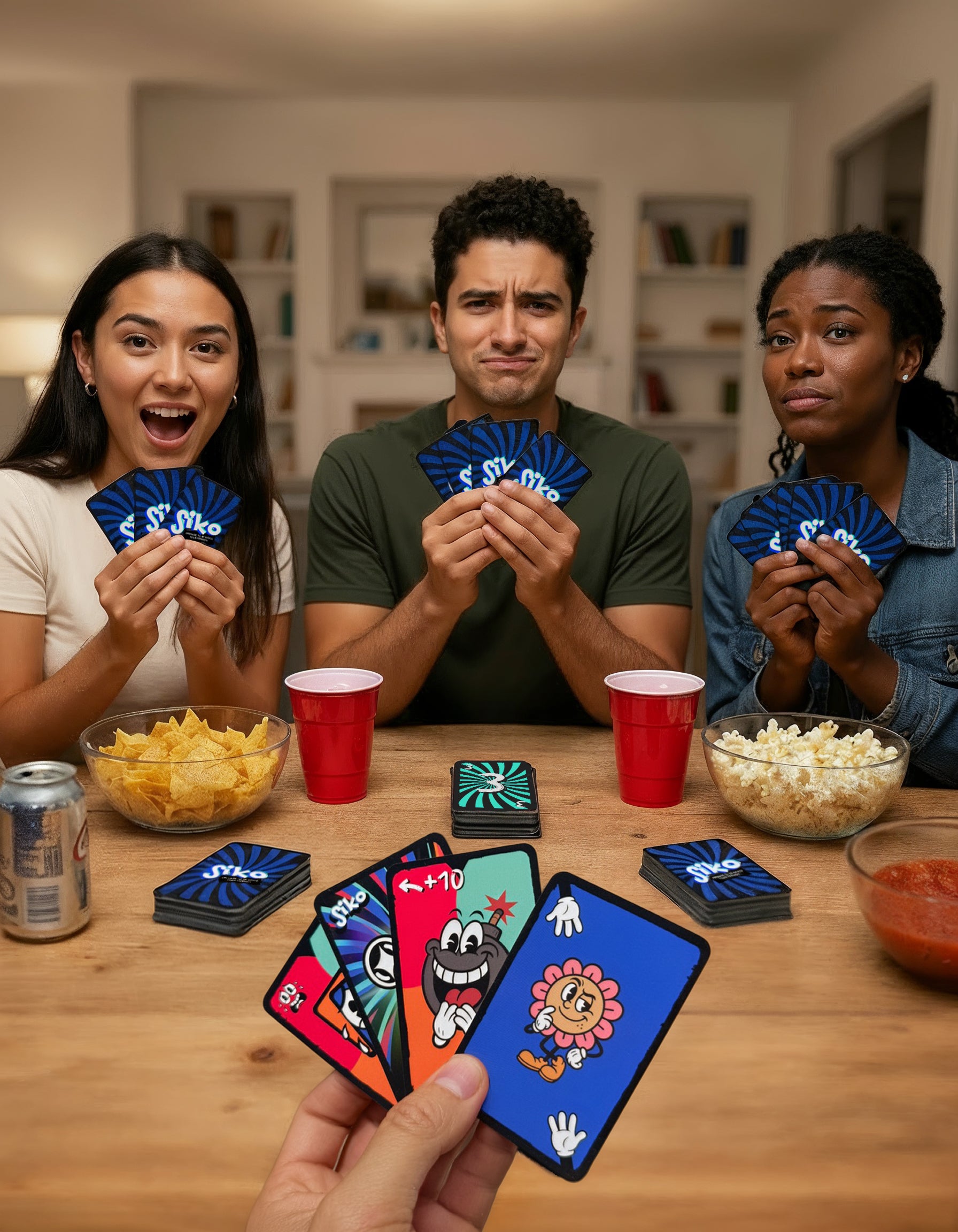 - BIGGER DECK, BIGGER DRAMA – With 188 cards, SIKO packs more action, more combos, and way fewer boring turns. Wild effects can chain longer, stacks get nastier, and the game stays unpredictable round after round.